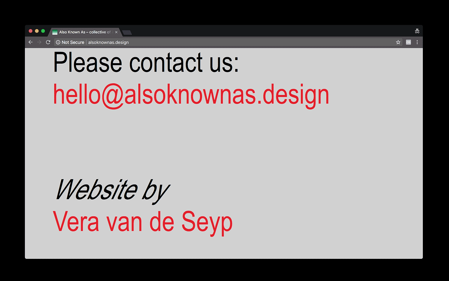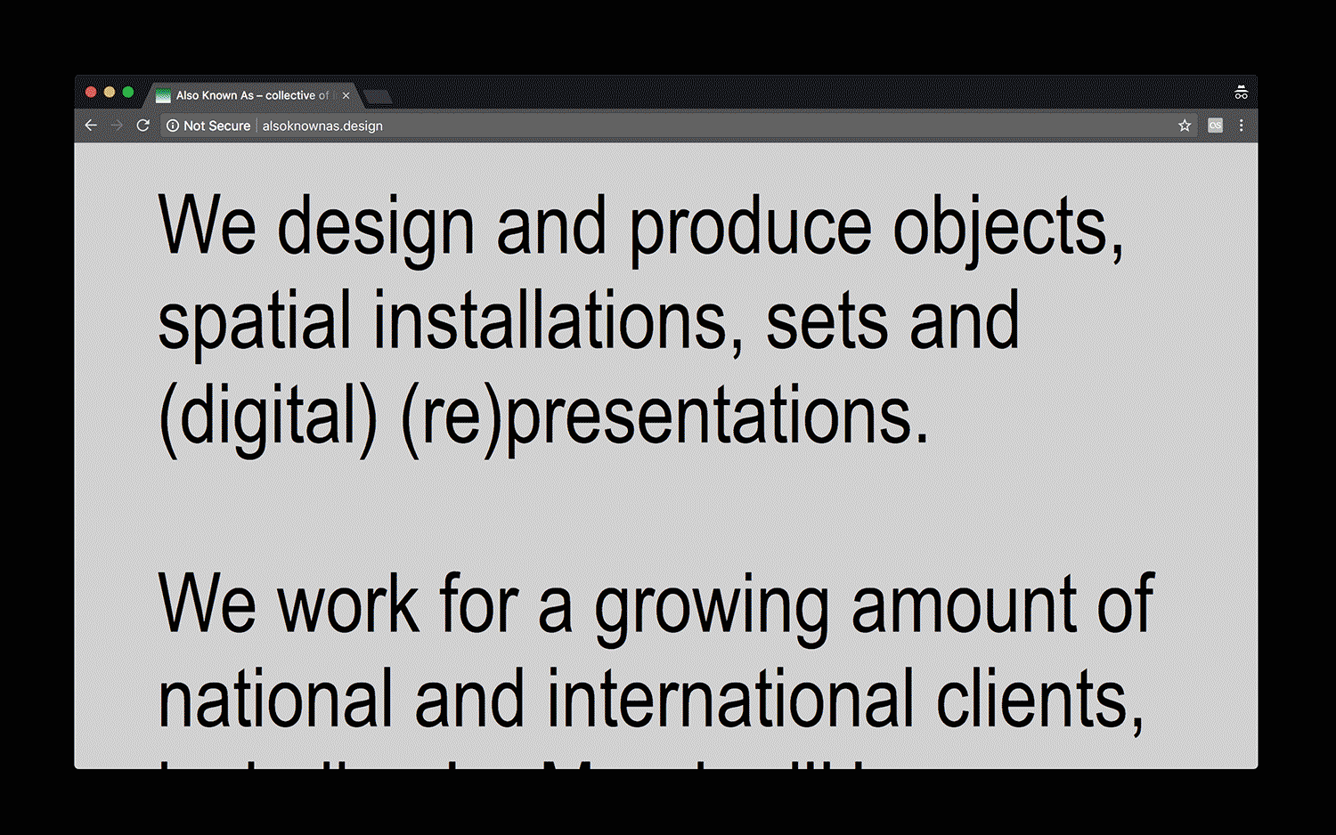 Also Known As is a collective of independent designers, who according to current issues in our professional field, join forces and shape our vision through a collective presentation. With Koos Breen, I designed their website which is an important part of their visual identity.