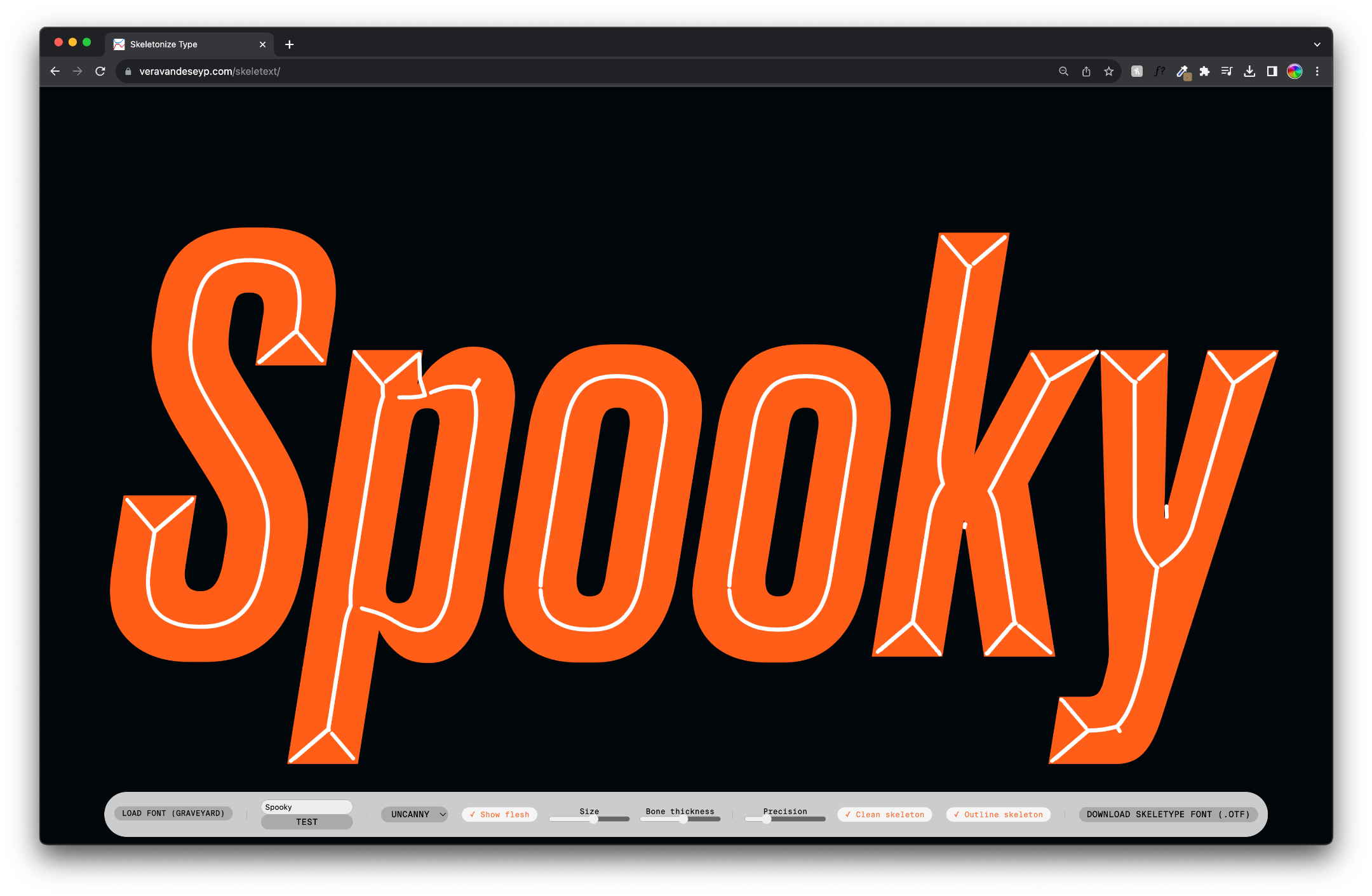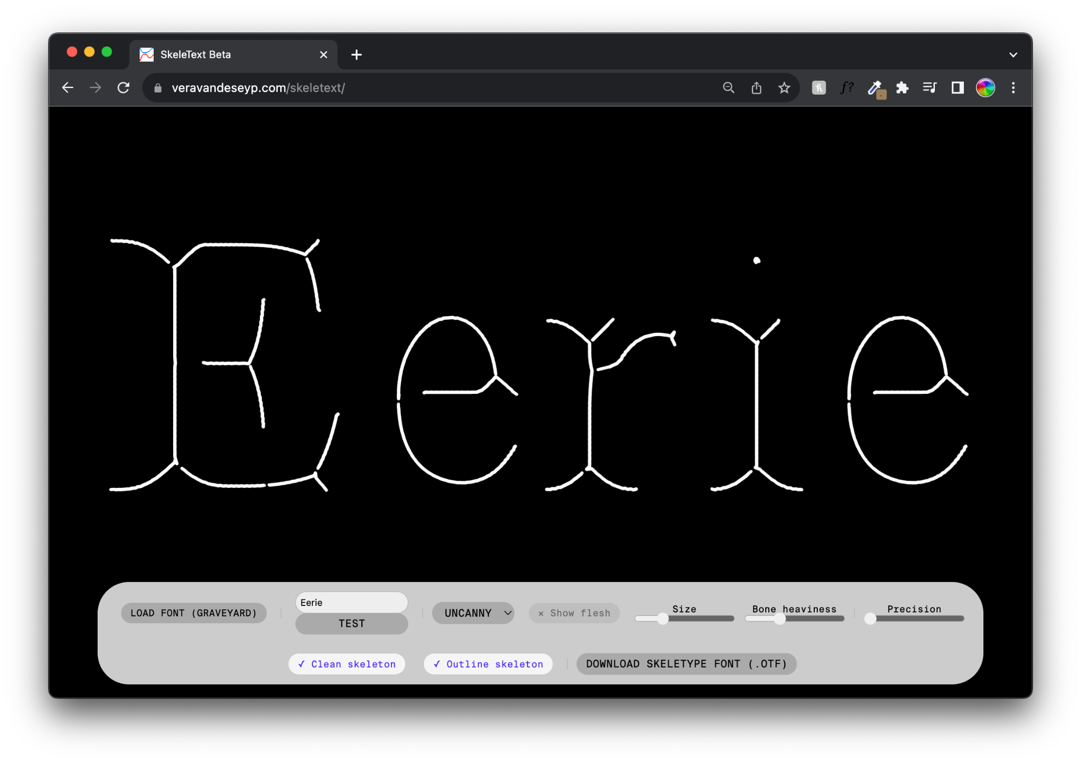 Have you ever needed a single-line font rather than an outline of a typeface? For instance in the use of digital fabrication processes such as laser cutting, embroidery, or CNC milling? SkeleText is an open-source creative tool that translates the character of any given font into a skeletal form through a series of geometrical transformations.