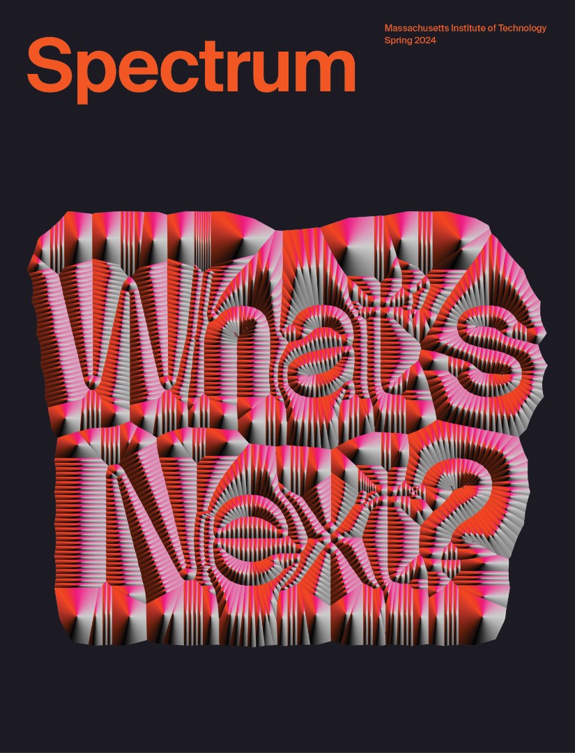For almost 20 years, MIT Spectrum has told extraordinary stories of MIT’s vision, impact, and community. For the 2024 spring edition "What's Next", a cover, cover animation and inside cover were designed.