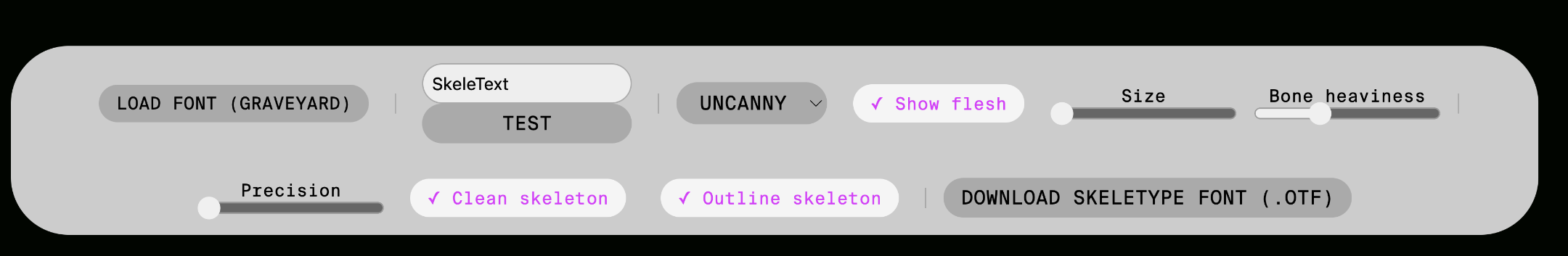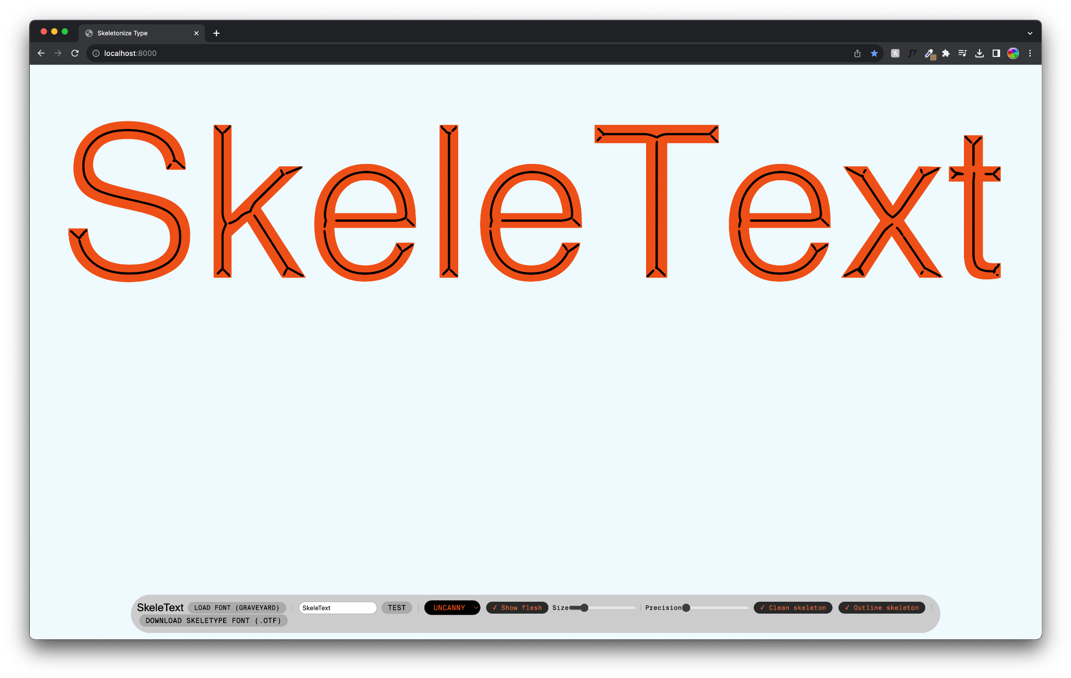 Have you ever needed a single-line font rather than an outline of a typeface? For instance in the use of digital fabrication processes such as laser cutting, embroidery, or CNC milling? SkeleText is an open-source creative tool that translates the character of any given font into a skeletal form through a series of geometrical transformations.