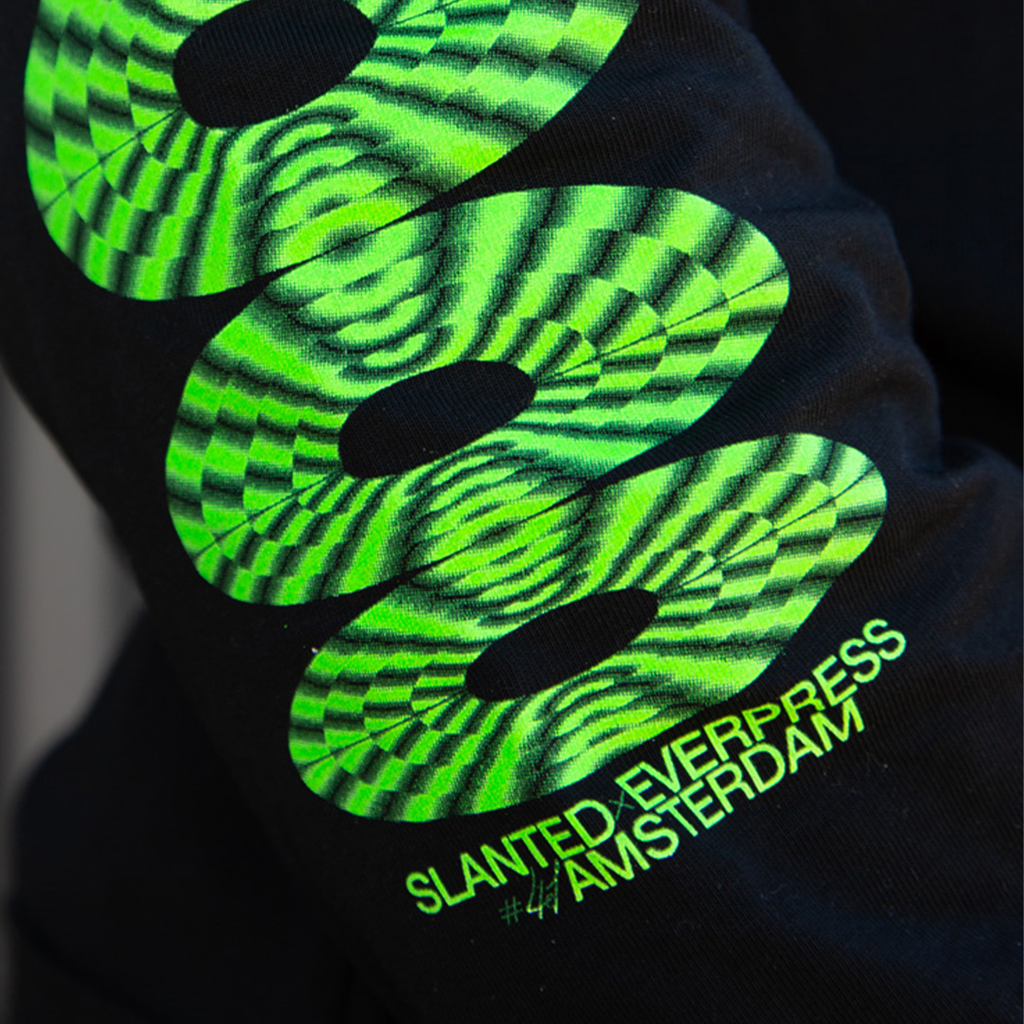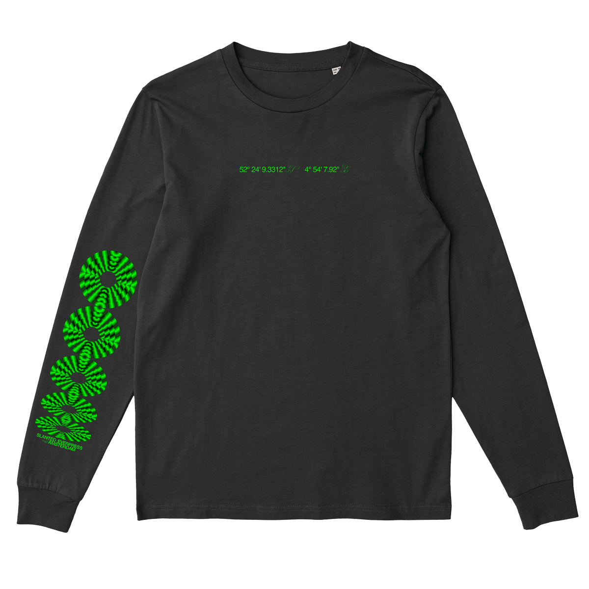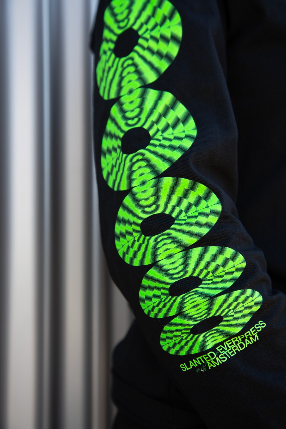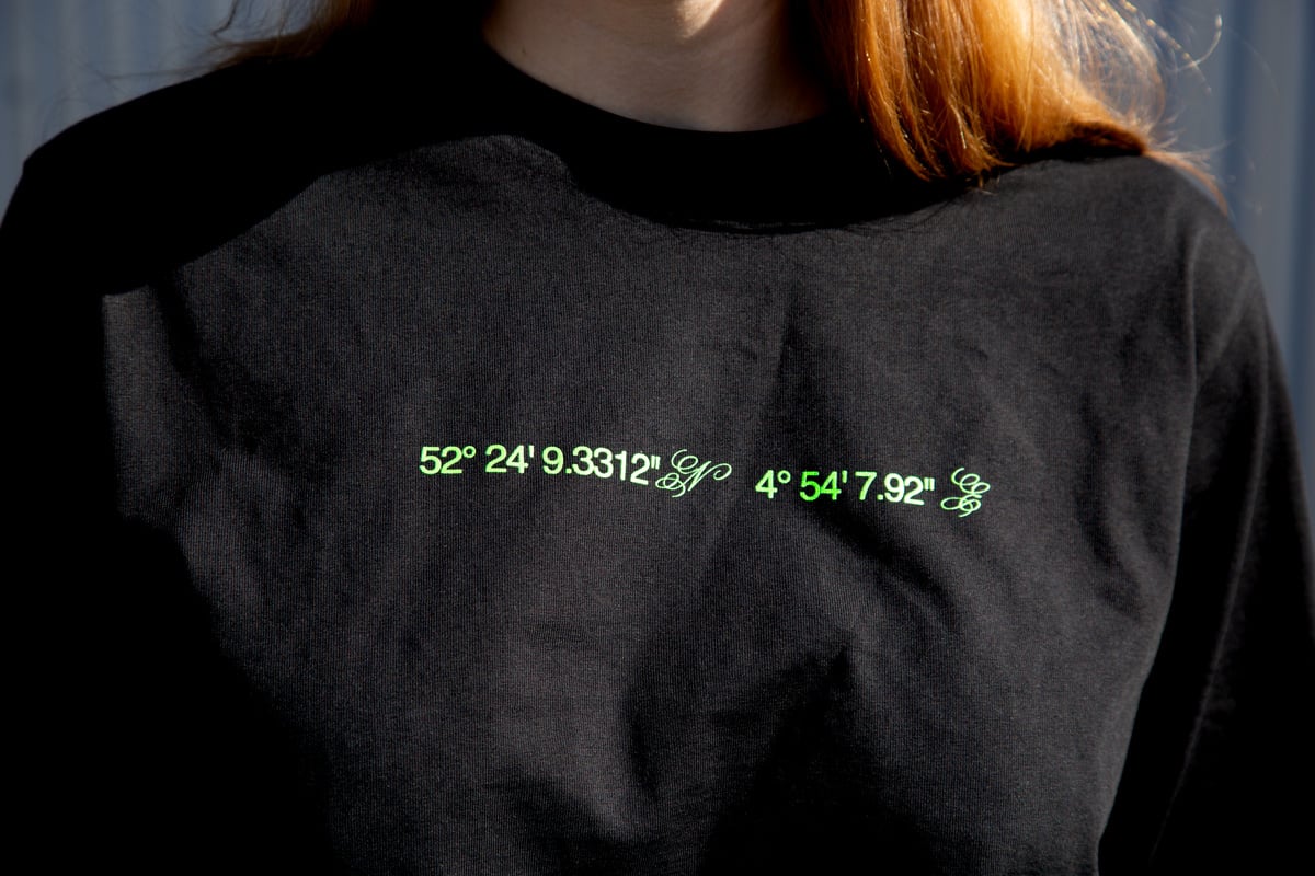 On occasion of the release of Slanted Magazine #41—Amsterdam, I teamed up with Everpress and Slnted to create a unique high-quality long sleeve with an eye-catching fluorescent silkscreen print. It is limited to only 100 pieces and available exclusively in the Slanted online shop. For the motif of the limited edition, I had a carte blanche from Slanted on the theme of Amsterdam. The design is based on the reflections of the many bridges in the water of the Amsterdam canals, the coordinates on the chest indicate the position of the Dutch capital.